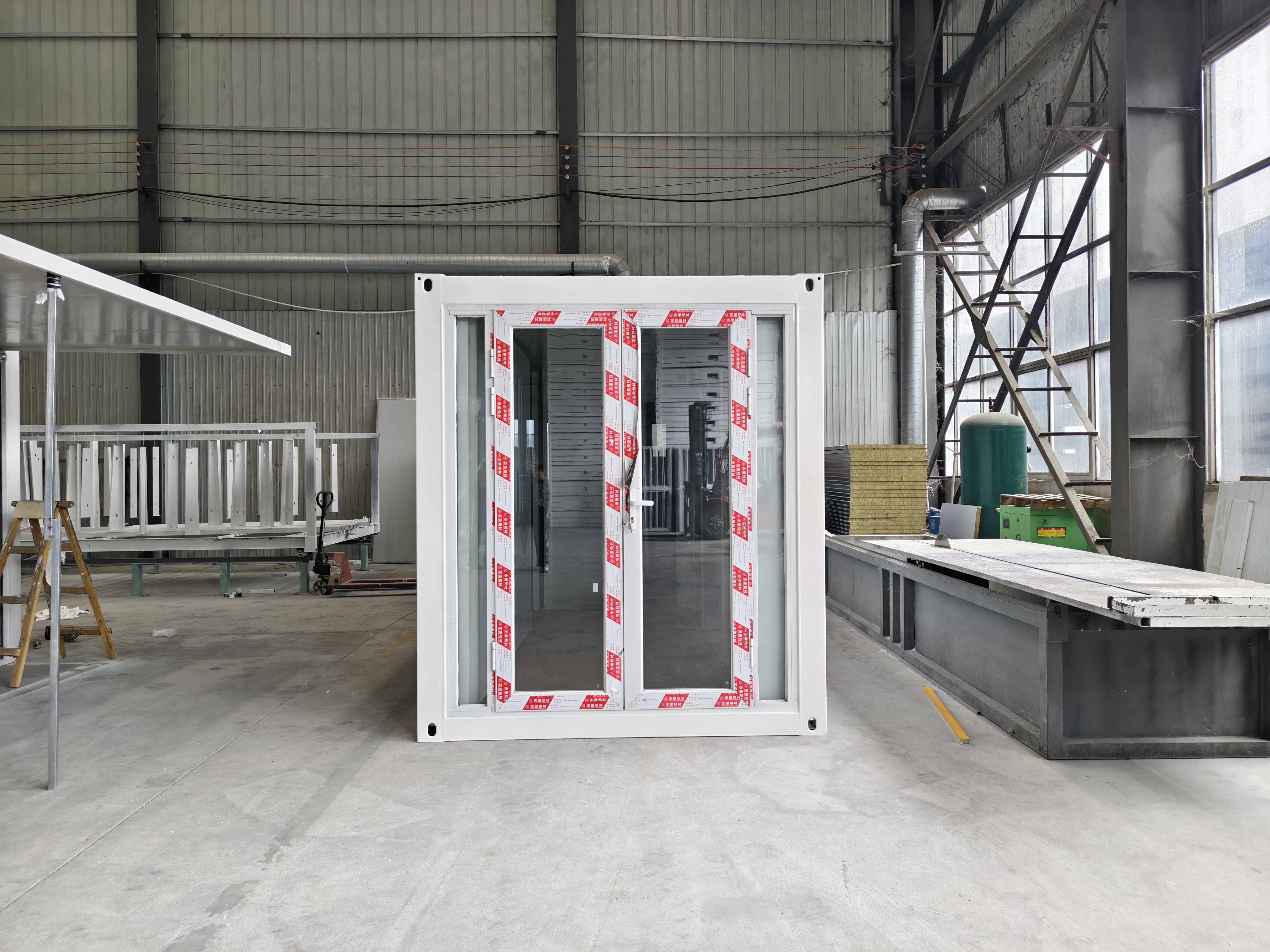 内部组件:根据说明手册安装内部固定装置,例如地板,窗户和门,使用 自动敲击螺钉(100mm) 进行固定。