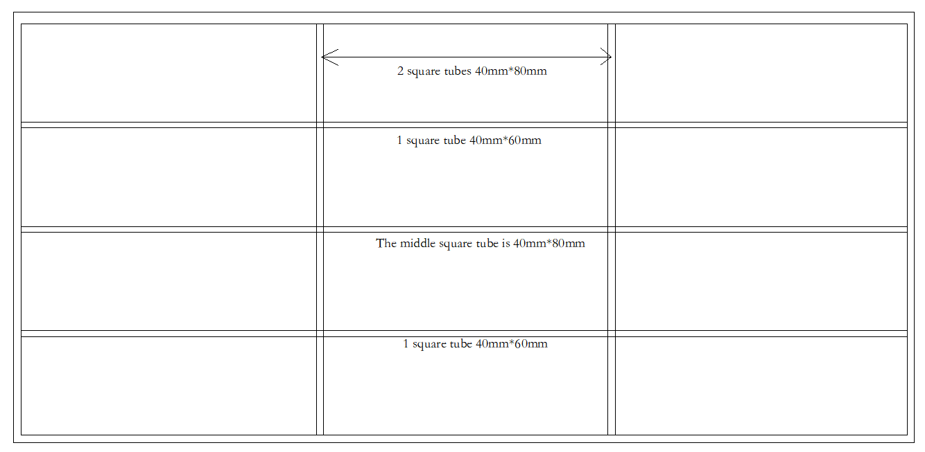 6 | 上和下梁 | 底部的次级光束 | 50*100*2990mm厚度1.1mm | 独立 | 9 | |
