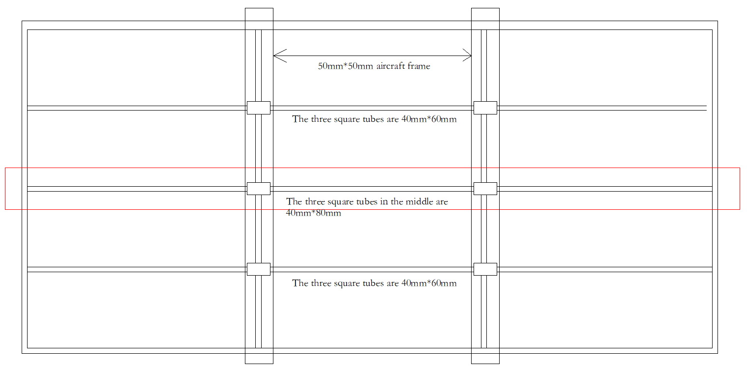 12.将两个20mm*20mm平方管放在短底梁上,然后用螺钉固定它们,以便它们与9 50mm*100mm平方管的同一平面。